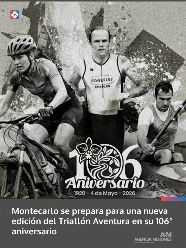 AGENCIA MISIONES.UNO | La ciudad de Montecarlo será escenario de la XV edición del Triatlón Aventura, que se realizará el próximo domingo 10 de mayo en el marco de los festejos por el 106° aniversario de la localidad. La competencia combina deporte y naturaleza, convocando a participantes de toda la región.
