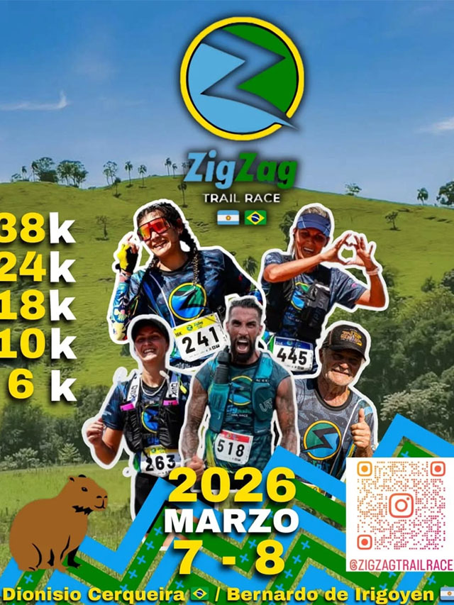 AGENCIA MISIONES.UNO | La competencia Zigzag Trail Race celebrará una nueva edición el 7 y 8 de marzo de 2026, con distancias de 38K, 24K, 18K y 10K, en un circuito que conectará territorios de Brasil y Argentina a través de entornos naturales.